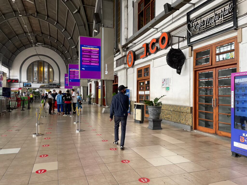 さて列車の予約に行きます!ゲストハウスから歩くこと数分。駅の窓口でジョグジャカルタ行きの列車があるかを聞きます。いくつか候補を出してくれて今からでもいけるとか言われたほど余裕があるみたい。明日の朝の10時発の列車を予約しました。チケットもその場で発行してくれて明日はこれを持っていくだけです!