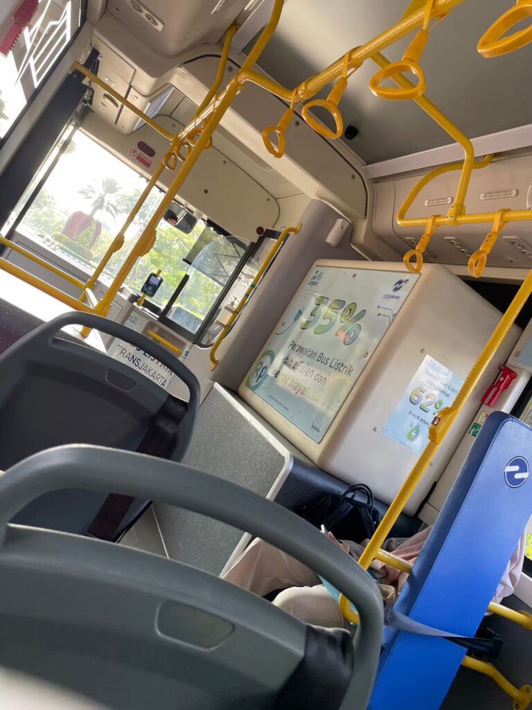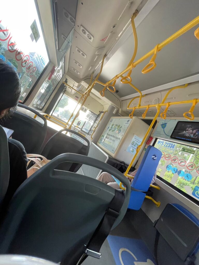 Googleマップが示す番号のバスに挑戦したいのですが、いつもGoogleマップの番号が違うことが多いのでバス停で待つ現地の人らしき方に聞いてバスの番号を確認し乗り込みました。バスの中はこんな感じ。