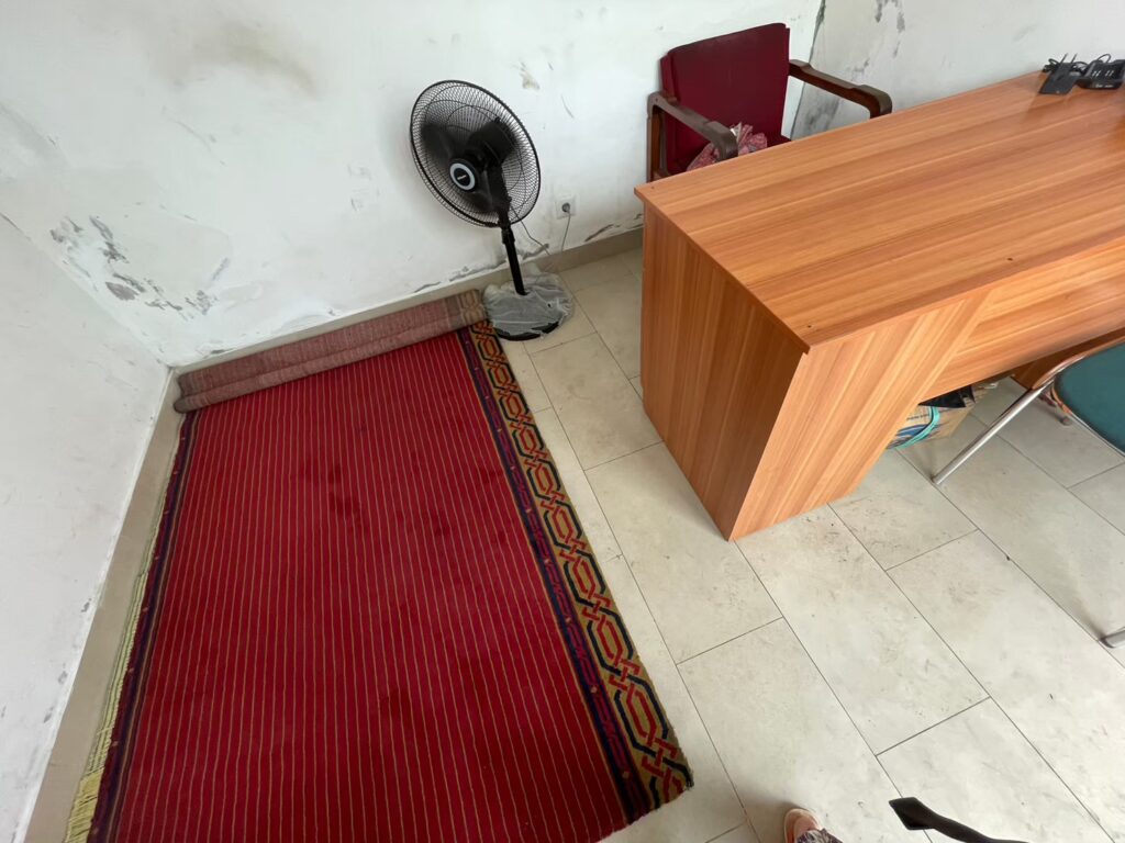着替えて中の建物に入っていくと、観光客用の入り口に通され、何やらこの部屋で待つようにと言われました。何待ちかを説明されずに部屋を閉められたのでめちゃくちゃ怖かった笑。部屋にはすでにおそらく日本人らしき男性一人がすでに待っていました。声をかけようか迷っていると、ドアが開いてモスクで着る用の服を着た4人組のグループの観光客がゾロゾロ「良かった〜」などと言いながら入ってきました。そこでようやく私は何人かのグループになってモスクに入るのだと認識しました。